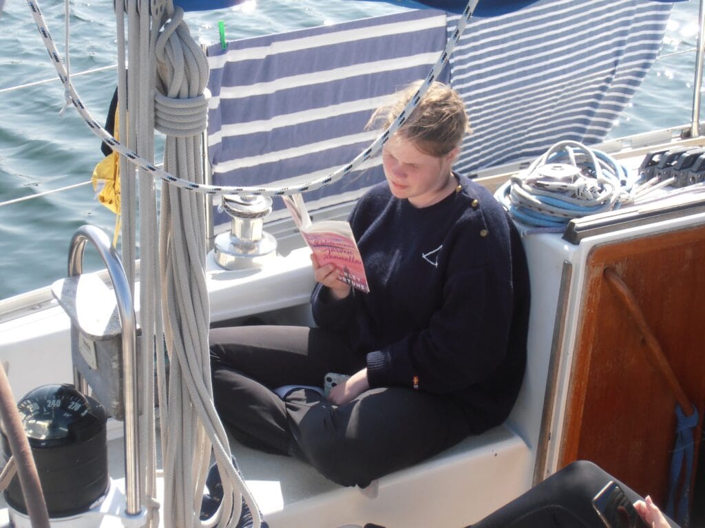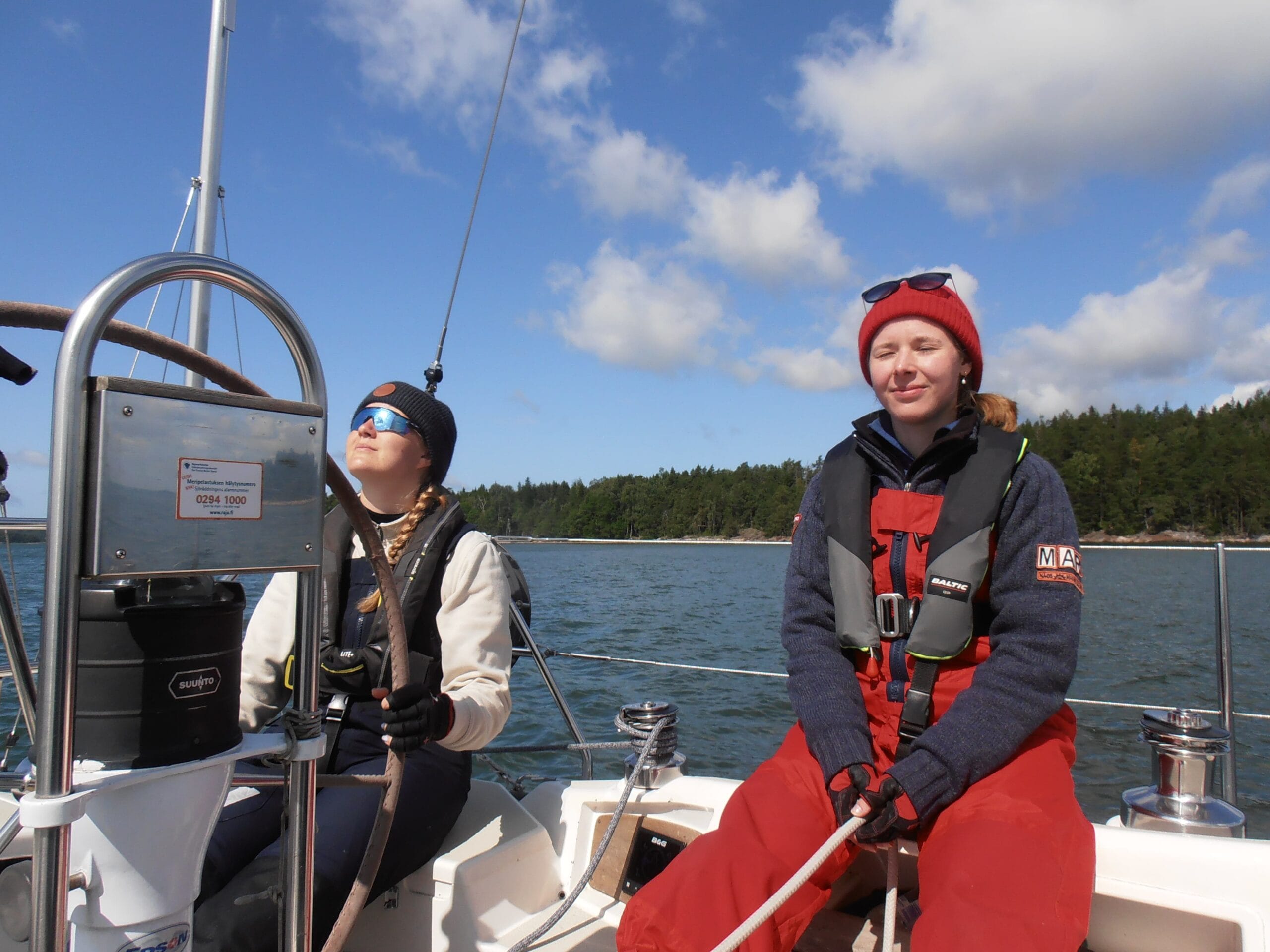 Viimeinen kokonainen purjehduspäivä oli vähätuulinen, mutta pääsimme silti vielä spinnuttelemaan. Aamupäivällä, jolloin tuuli oli vielä hieman navakampaa, päätimme, että päällystö jää sisälle tekemään ruokaa ja muu naisisto kannelle hoitamaan purjehtimisen keskenään. Koimme myös hauskoja hetkiä, kun Alina pyysi laittamaan kaasun päälle, jotta ruuanlaitto onnistuisi paremmin, ja Kia ruorissa päätti laittaa sen sijaan koneen päälle ja kaasun eteenpäin. No, näitä sattuu paremmissakin piireissä… Illaksi saavuimme vielä Turun pursiseuran saaritukikohtaan Pyytinkarille.