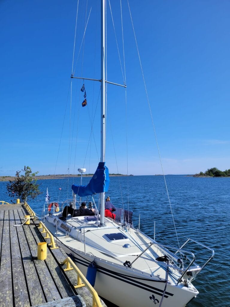 Nuorempi naisisto vaati pääsyä Maarianhaminaan – mikäköhän mahtoi olla syynä? Torstaina lähdimme spinnutellen käymään pikavisiitillä Maarianhaminassa, sillä polttoaine alkoi olla vähissä ja avokadot olivat unohtuneet ostoslistalta. Pakollisuuksien jälkeen lähdimme vielä yöksi Rödhamniin yllätysvieras veljeslippukunnasta mukanamme. Rödhamnissa osa naisistosta pääsi viettämään aikaa Sinikotkien kanssa, ja päällystö pääsi tutustumaan erään eläkeläispariskunnan purjeveneeseen. Kiitos heille kattavasta esittelystä näin veneprojektin ollessa käynnissä.