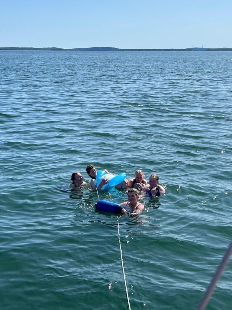 Toisena purjehduspäivänä aurinkokin päätti näyttäytyä, ja kävimme päiväpysähdyksellä Isokarin majakalla ottamassa naisiston tärkeä ryhmäkuvan. Päiväretken ja tietenkin jäätelöpaussin jälkeen lähdimme kohti Ahvenanmaata ja Bärötä! Tuuli siivitti meidät vauhdilla aallokon läpi kohteeseemme, ja vauhdin huumassa eräs naisiston jäsen herättelikin ajatusta pidemmästä reissusta (esim. Puolaan?). Päädyimme kuitenkin alkuperäiseen suunnitelmaamme.